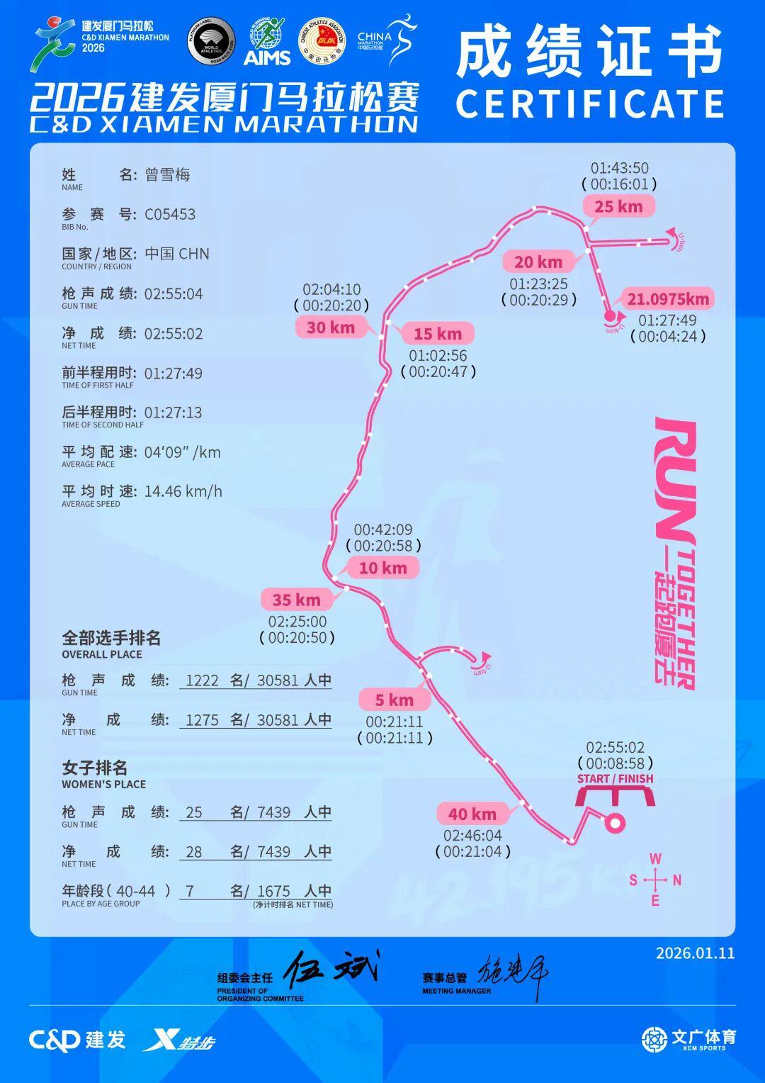 2026年厦门马拉松,曾雪梅就站在C区的人堆里,一周前,她刚刚跑完容桂马拉松,这对她来说是一场背靠背的比赛。对目标破三的跑者来说,C区不算一个理想的出发位,要想跑出速度,必须在人缝中穿梭,这需要消耗极大的体力和精力。