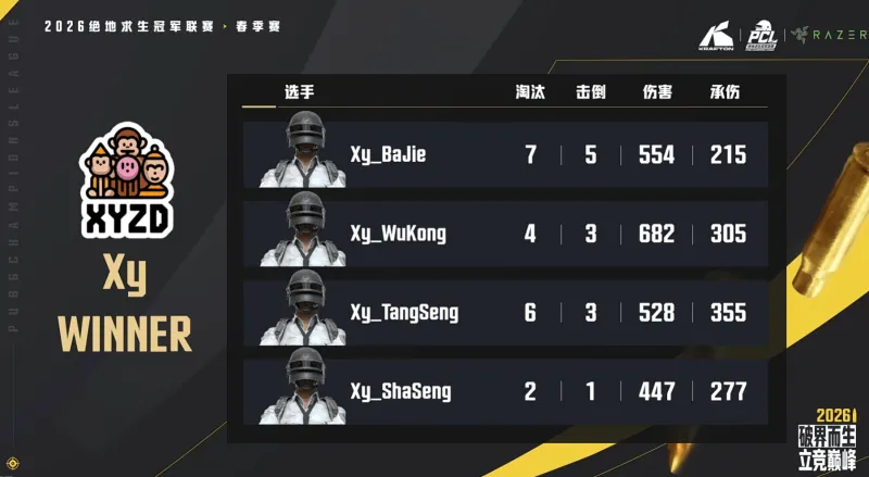决赛圈 XY 4V3 BMZ,XY依靠地形和人数优势展开枪线,尽管BMZ打倒1人,但最后余下队员位置被锁定,最终XY战队1换3,成功吃鸡。