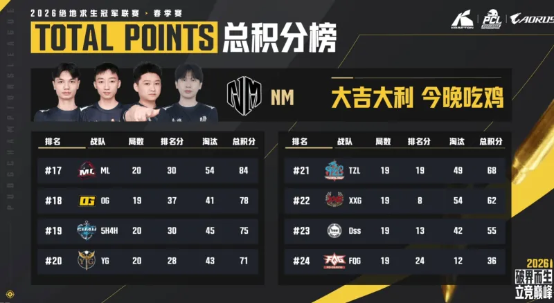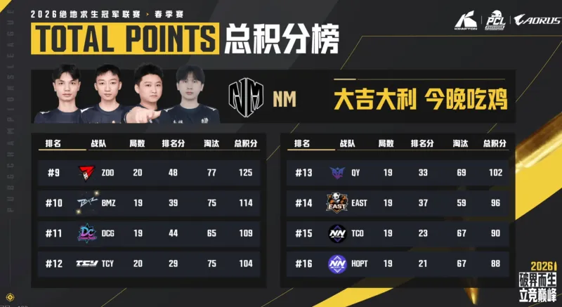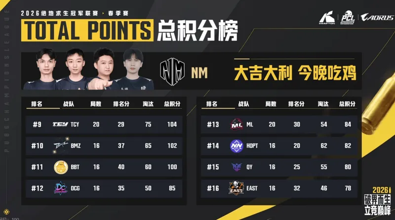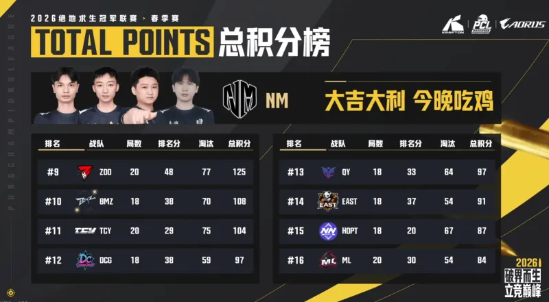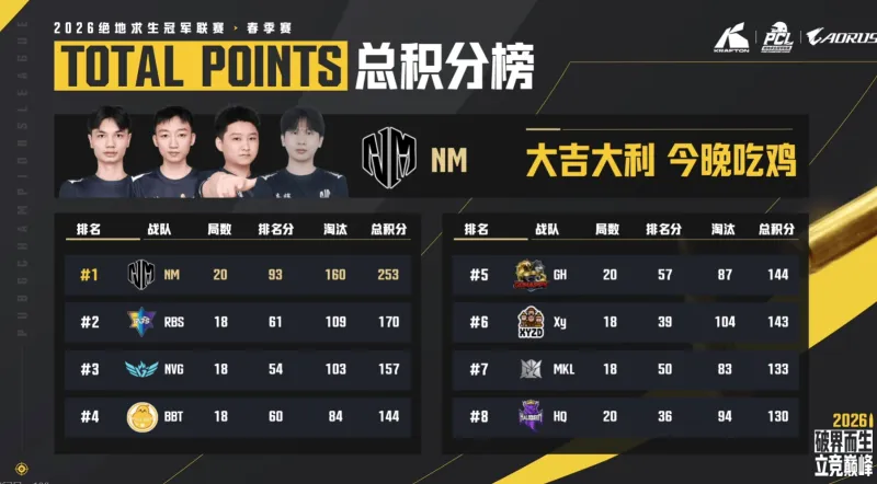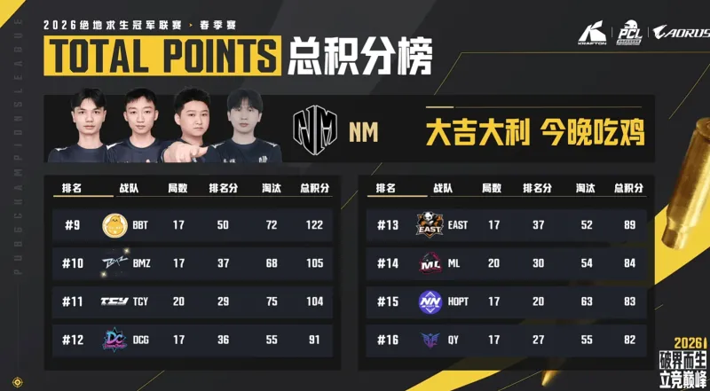 PCL春季赛B阶段完赛:NM头名晋级,RBS、BBT分列二三