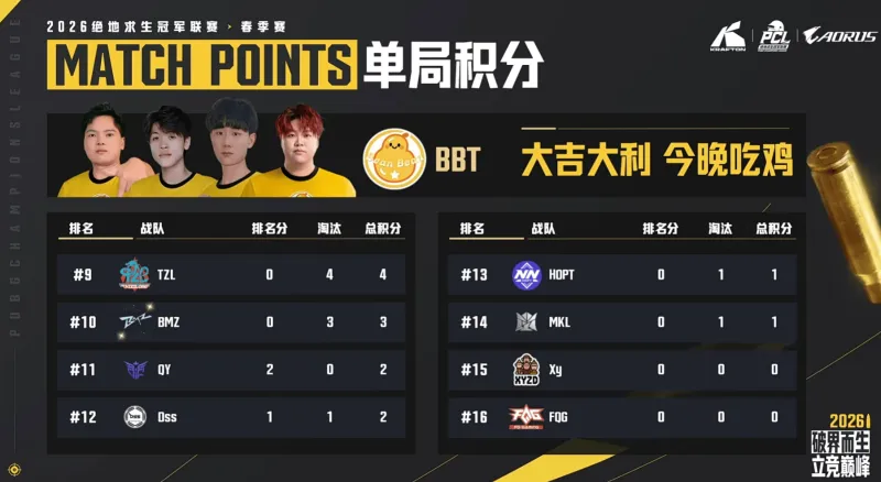 阶段7,FQG被TCO淘汰,TCO两人被BBT满编淘汰,BBT满编打掉DCG独狼,完成吃鸡。